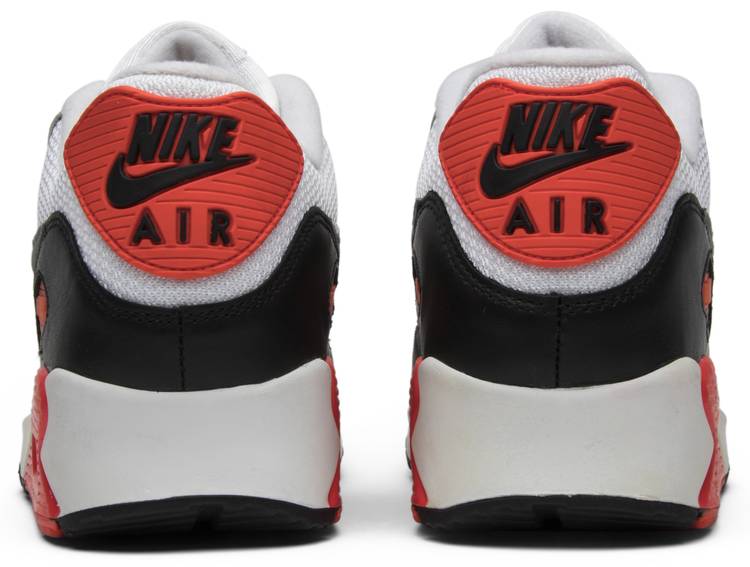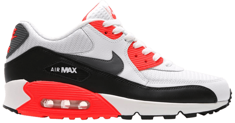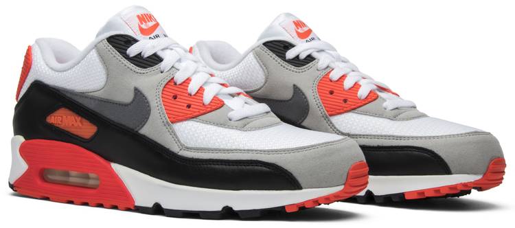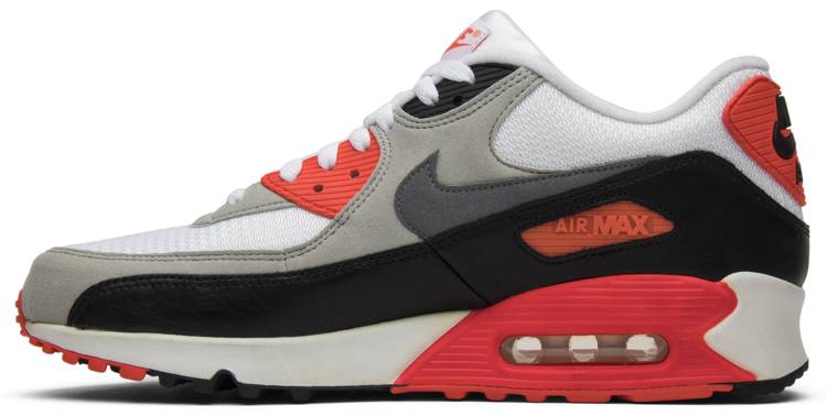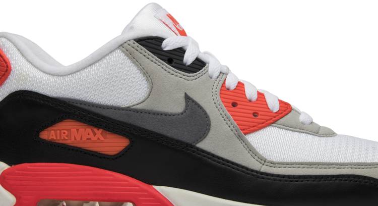 Nike Air Max 90 OG ’Infrapuna’ 2015 julkaistiin kesäkuussa 2015 kunniaksi 25 vuotta ikonin Air Max 90 siluetti. Tämä retro versio tulee valkoinen mesh ylempi harmaa mokka ja musta nahka peitot ja Infrapuna aksentti kielen, kantapää, sirkkoja, välipohja ja pohja.