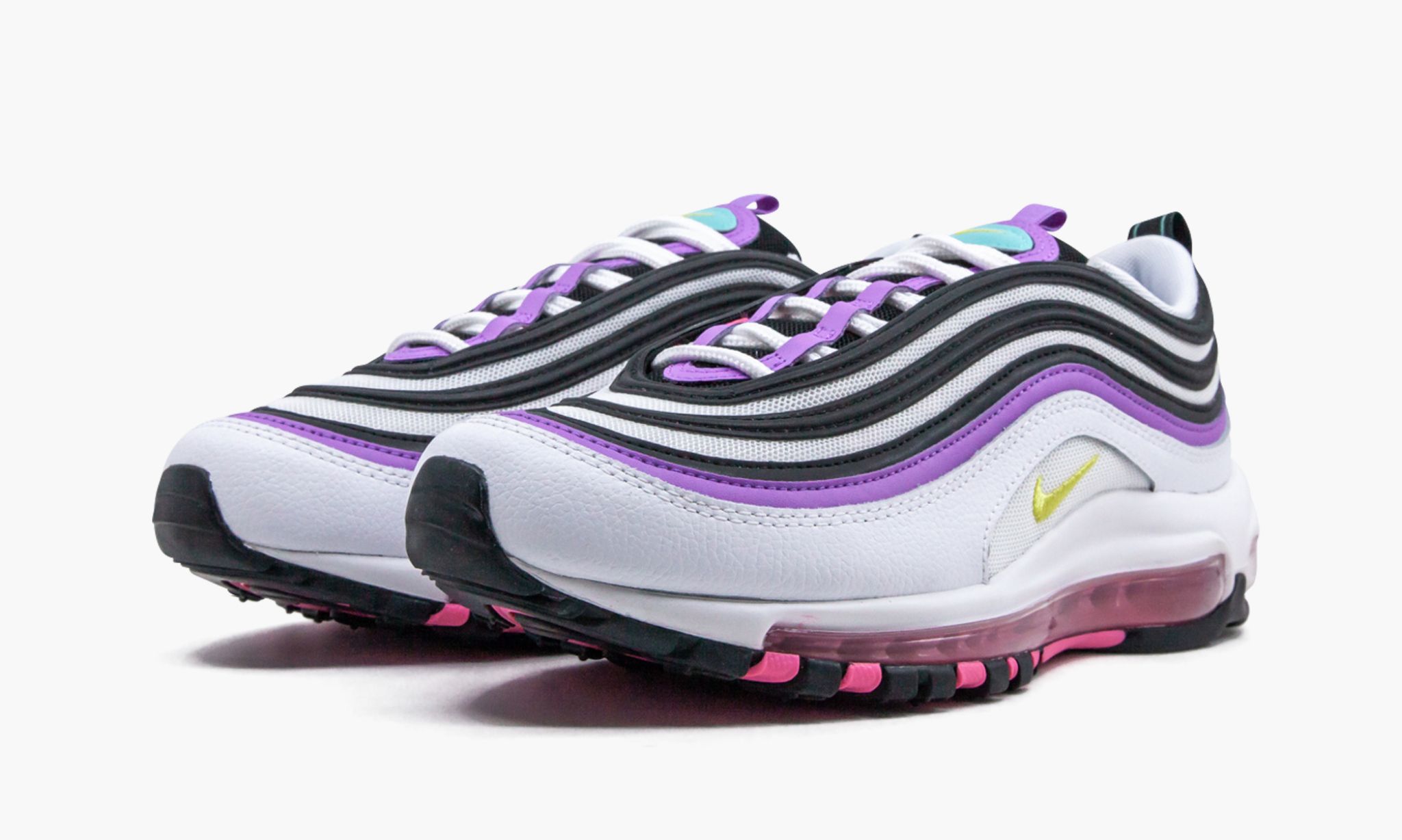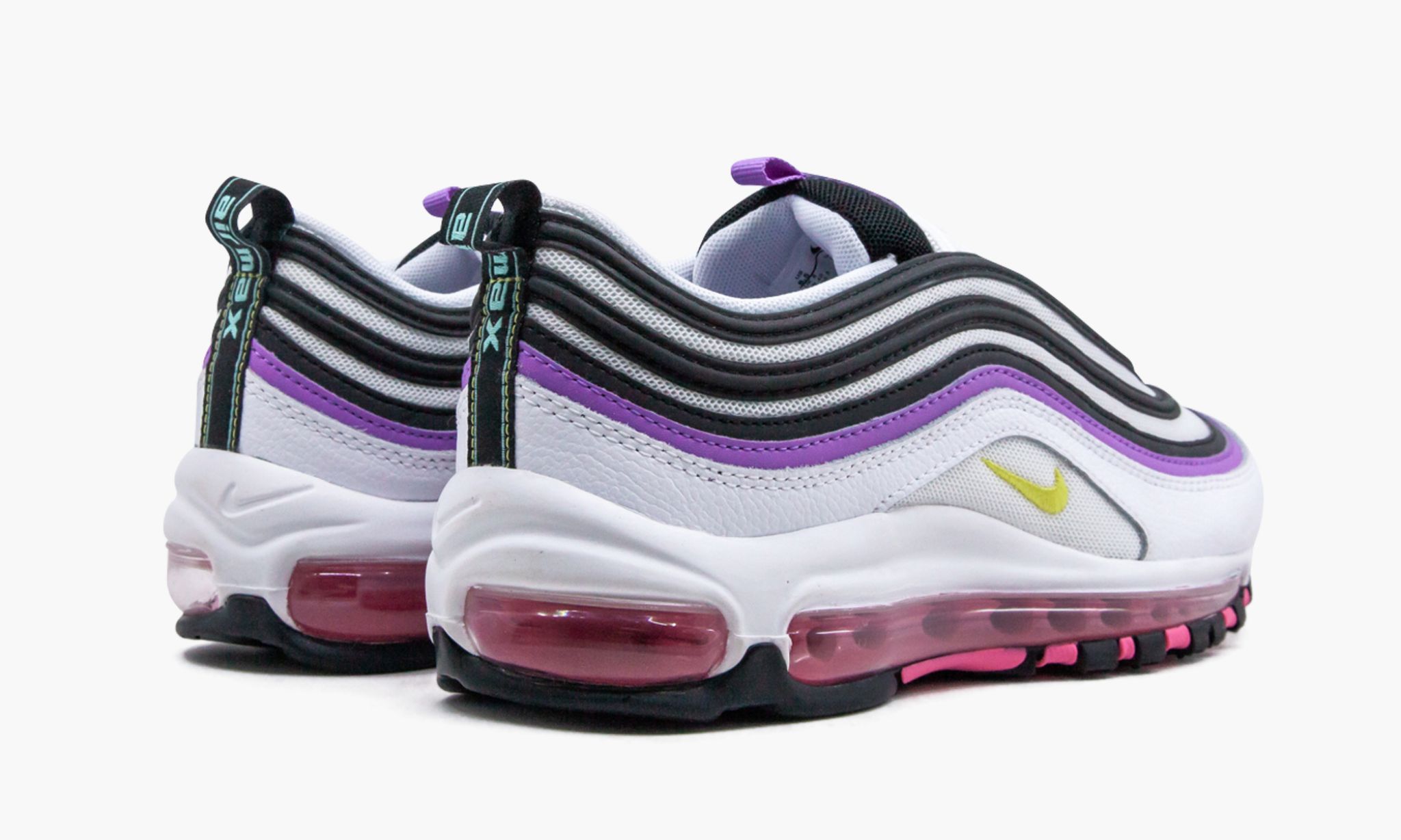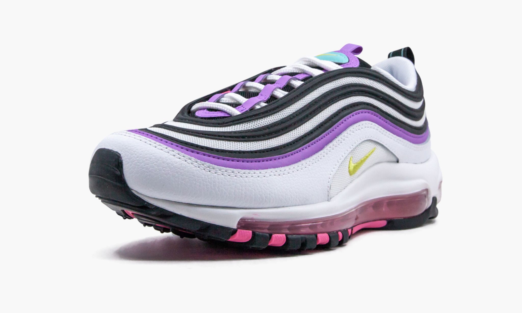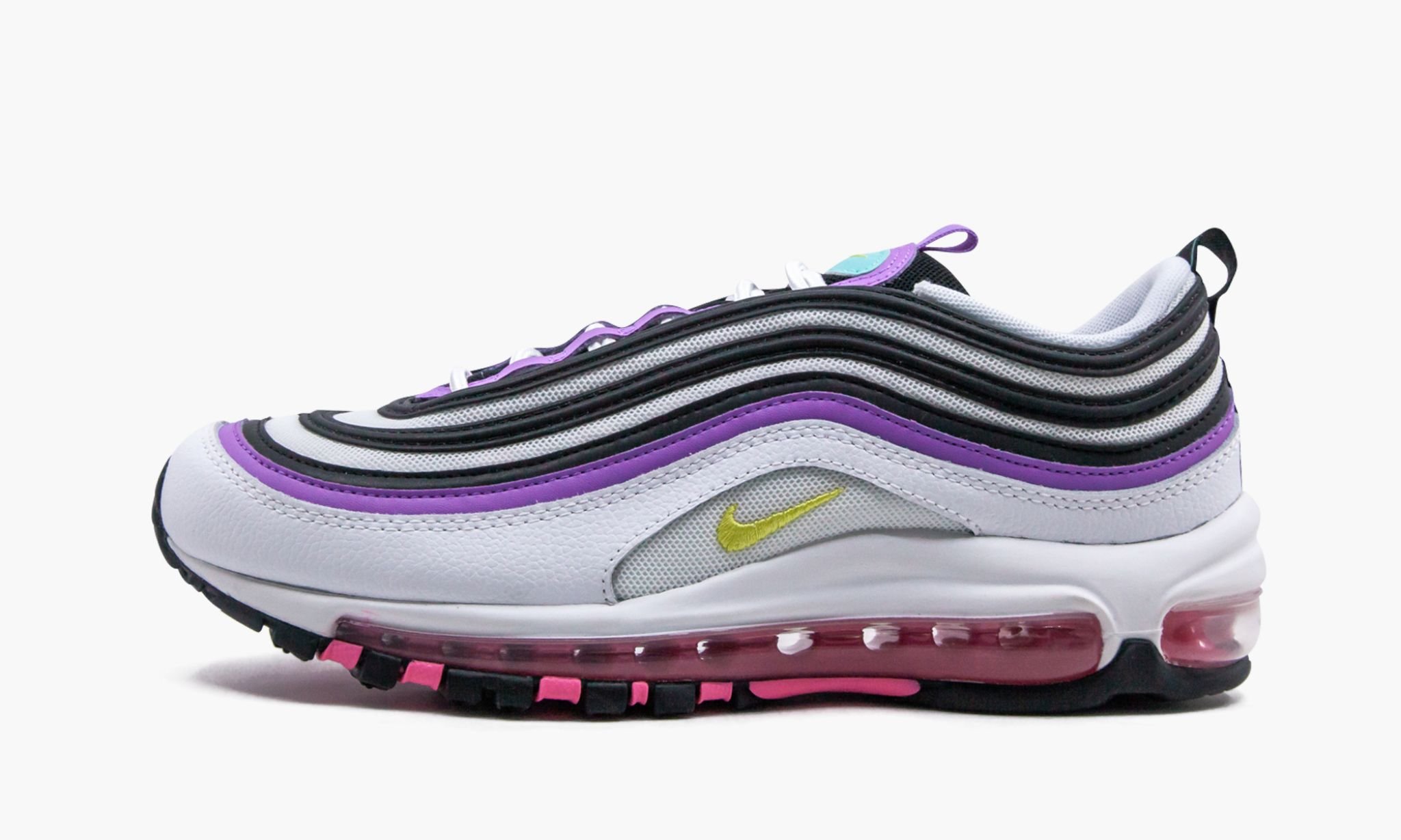 Nike Air Max 97 ”Kirkkaan Violet” vipusuhteita väri yksityiskohdat luovat ainutlaatuisen ilmeen. Valkoinen mesh ja