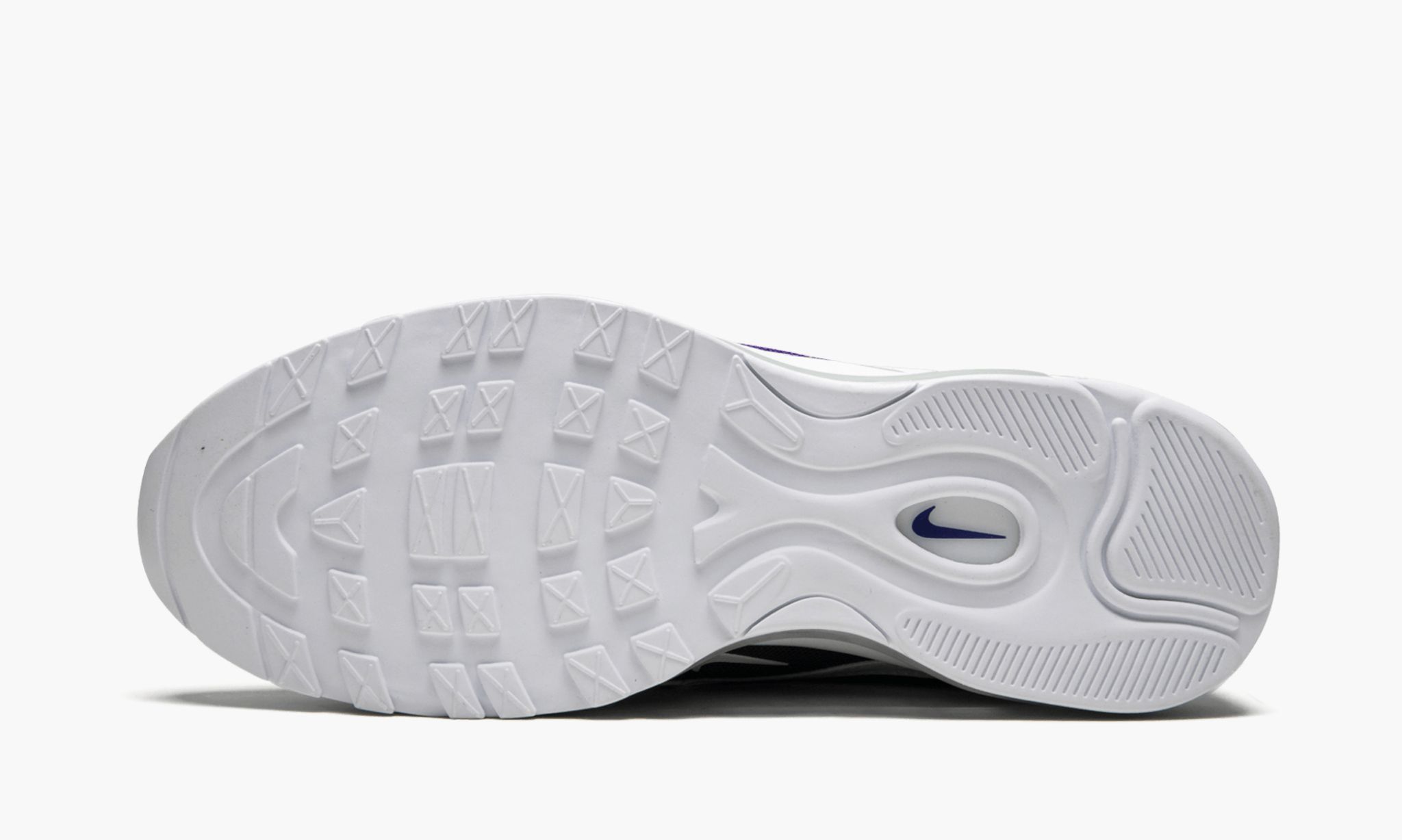Kevyt päivitetty versio Nike Air Max 97 on mesh ylempi valkoiset hitsattujen overlayt violetti