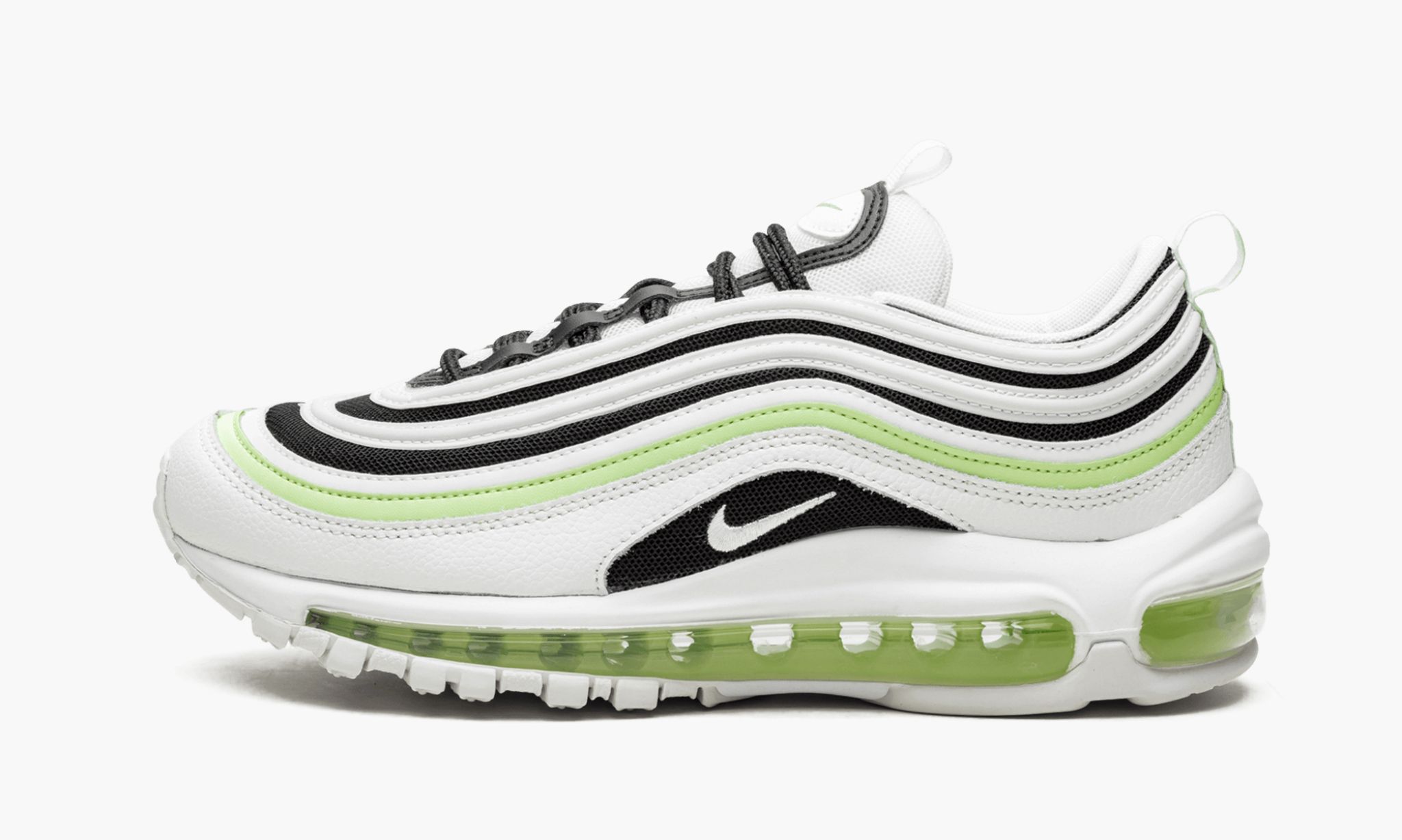 Pukeutunut välkkyvä jäljittelevät värimaailman, tämä pari naisten Air Max 97: n on varmasti kääntää päät sekä päivällä että yöllä ansiosta niiden räikeä 3M koristeita. Painollinen Niken allekirjoitus Swoosh kirjonta, kerroksellinen sneaker esittelee täyspitkä Air työkalut; vaikka vetokielekkeet mahdollistavat helposti päälle ja pois kielen ja kantapää.